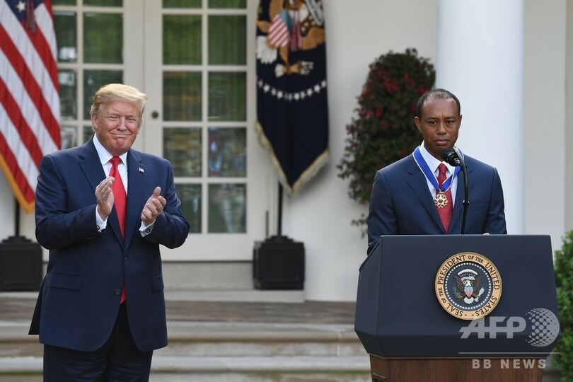 ウッズに自由勲章、トランプ大統領が米ホワイトハウスで授与