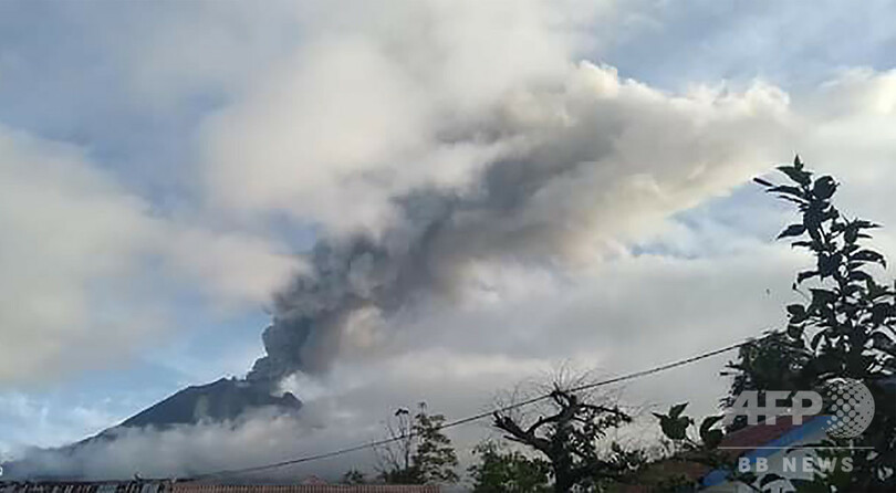 インドネシアのシナブン山が噴火、巨大な噴煙柱 人的被害なし