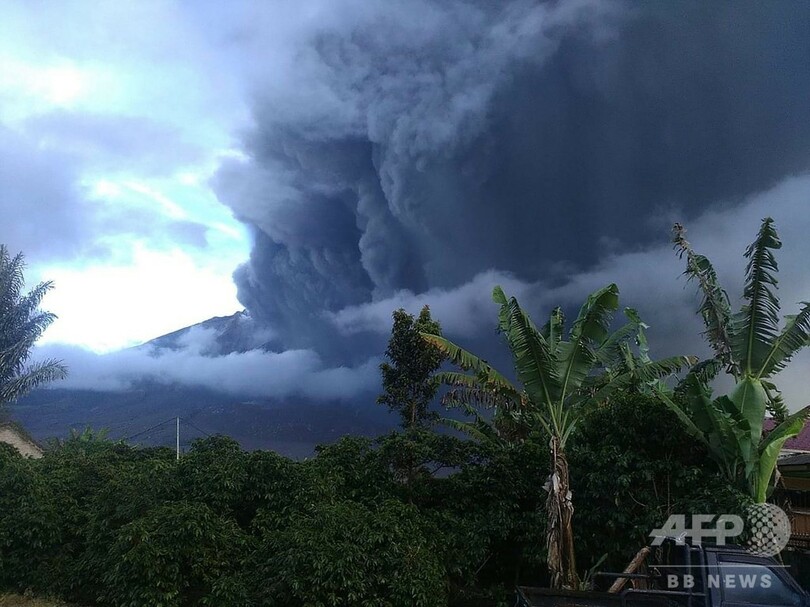 インドネシアのシナブン山が噴火、巨大な噴煙柱 人的被害なし