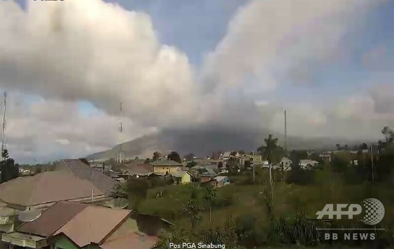 インドネシアのシナブン山が噴火、巨大な噴煙柱 人的被害なし