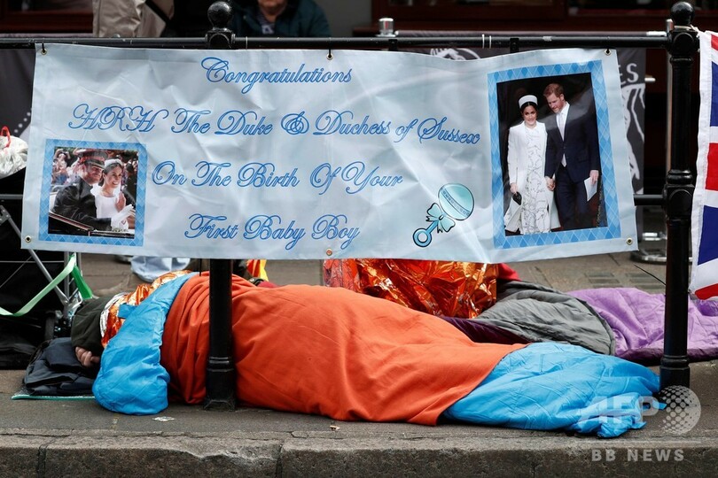 英テレビ各局は、夫妻の称号が「サセックス公爵夫妻(Duke and Duchess of Sussex)」であることから、現時点では「ベビー・サセックス」と呼んでいる。(c)AFP/Alice RITCHIE with Dmitry ZAKS