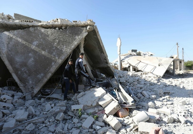 在英NGO「シリア人権監視団(Syrian Observatory for Human Rights)」によれば、8日連続となる爆撃が実施された7日、空爆と砲撃により民間人13人が死亡した。(c)AFP