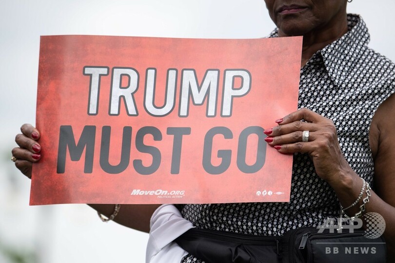 【5月10日 AFP】ドナルド・トランプ(Donald Trump)大統領の弾劾手続きの開始を求める人々が9日、1000万人分の署名を米連邦議会議事堂に提出した。議事堂前の集会には民主党の下院議員2人も加わった。