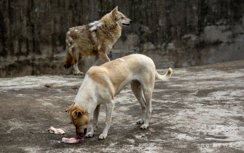 孤独なオオカミ、犬と同居で寂しさ和らぐ 武漢の動物園