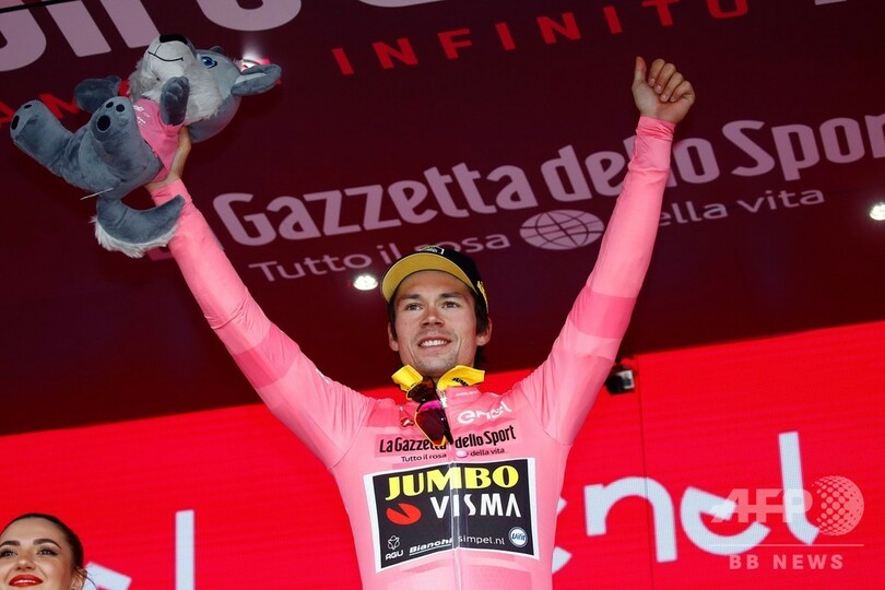 一方、チーム・ユンボ・ビスマ(Team Jumbo Visma)のプリモシュ・ログリッチ(Primoz Roglic、スロベニア)はメイン集団でフィニッシュし、総合首位の座を維持している。(c)AFP