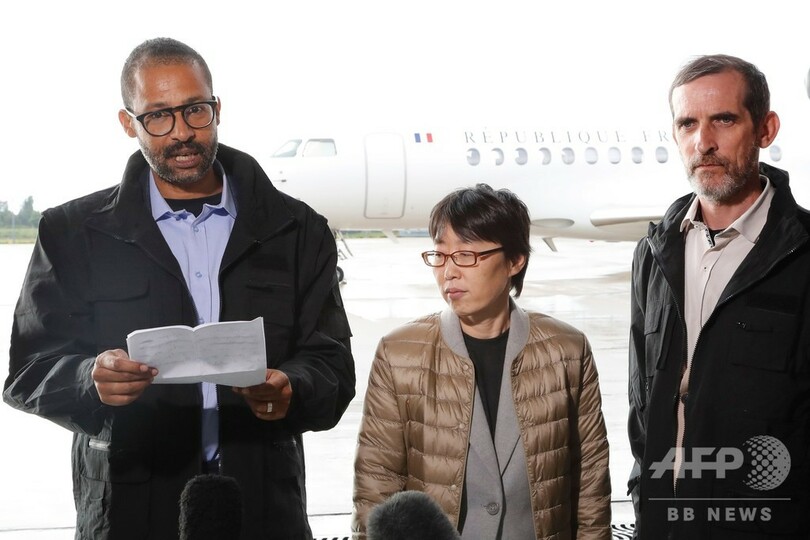 ブルキナファソで救出の人質3人、フランスに到着 一人は偶然見つかった韓国人女性