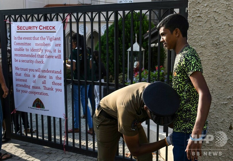 コロンボの住宅地区にある聖テレジア教会では、アサルトライフルで武装した兵士らが警備に当たり、ミサに訪れた信徒らは教会内に入る前に爆発物を所持していないか身体検査を受けていた。厳重警戒態勢の一環として、教会敷地内への自動車の乗り入れは一切禁じられ、周辺の駐車場はいずれも空っぽの状態だった。