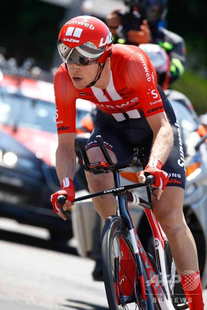 ステージはチームサンウェブ(Team Sunweb)のチャド・ヘイガ(Chad Haga、米国)が勝利した。(c)AFP
