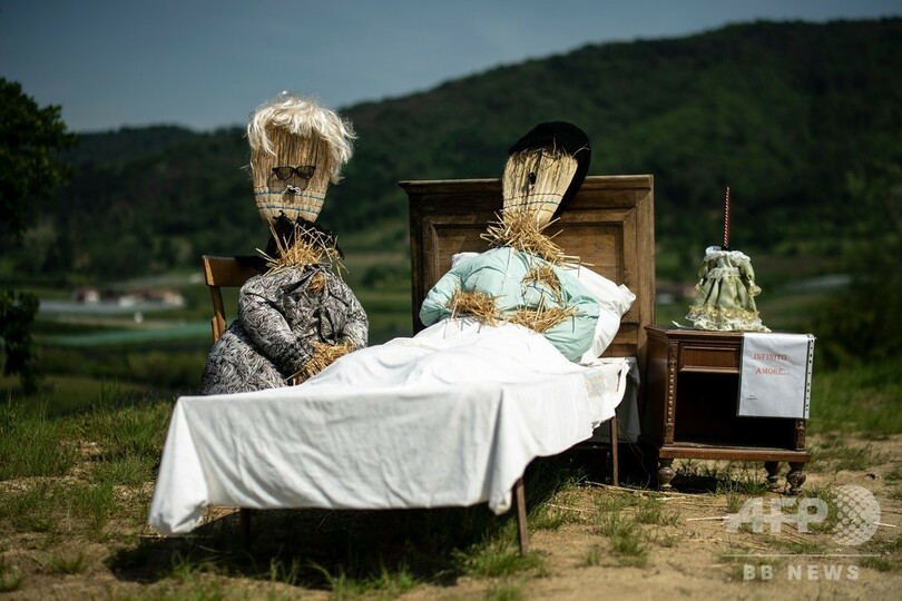 ニュース ライフ 怖がらせる気ある? イタリアの「かかしコンテスト」 2019年5月14日 7:00 発信地:クーネオ/イタリア [ イタリア ヨーロッパ ] このニュースをシェア ‹ › ❮ 4/16 ❯ イタリア北部クーネオ近郊のカステッラールで開催された「かかしコンテスト」の作品(2019年5月10日撮影)。(c)MARCO BERTORELLO / AFP 画像作成中 ! 【5月14日 AFP】イタリア北部クーネオ(Cuneo)近郊のカステッラール(Castellar)で毎年恒例の「かかしコンテスト」が開催され、町の人々の力作が畑や中庭、道端に並んだ。(c)AFP ライフ 一覧へ> メディア・報道関係・法人の方向け 写真・動画 購入のお問合せ>