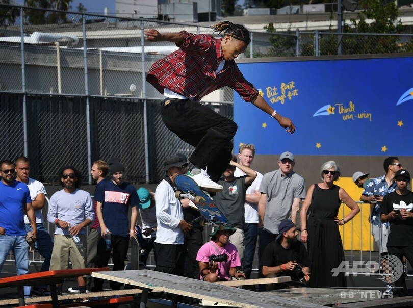 【5月15日 AFP】米カリフォルニア州ロサンゼルスでこのほど、伝説的スケートボーダー、デーウォン・ソン(Daewon Song)さんの名を冠した大会「デーウォンズピクニック(Daewon's Picnic)」が開催された。会場となったロックウッド小学校(Lockwood Elementary School)は、オブスタクル(障害物)としてのピクニックテーブルが有名な定番のスポットだ。(c)AFP
