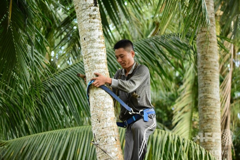 ヤシの実取りの名人、木登りは1日に60回以上 海南