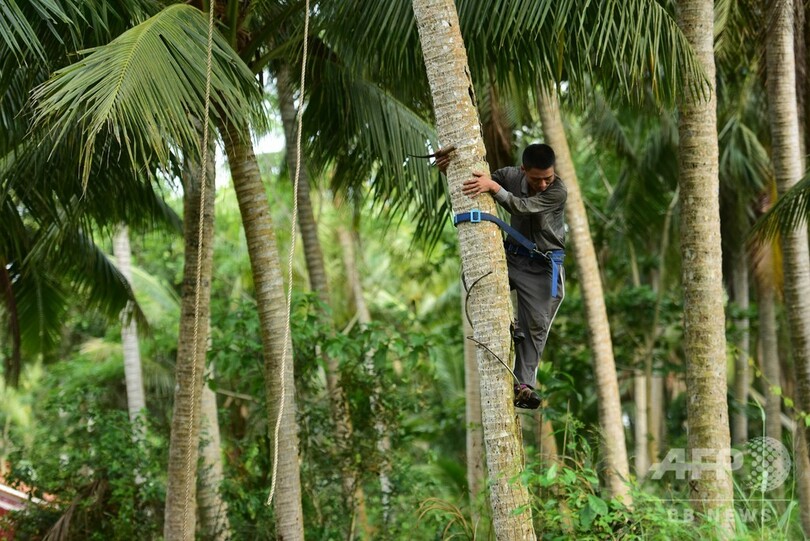ヤシの実取りの名人、木登りは1日に60回以上 海南