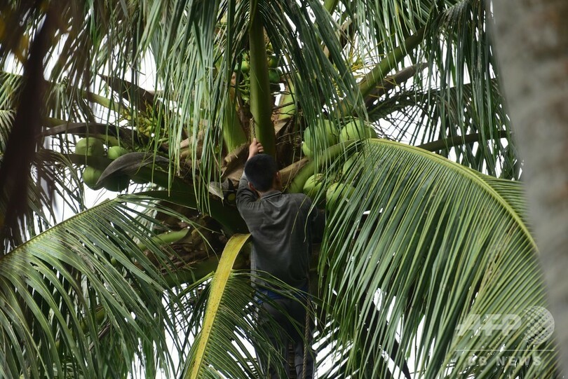 ヤシの実取りの名人、木登りは1日に60回以上 海南