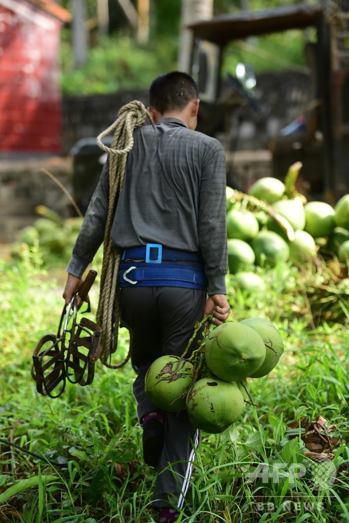 ヤシの実取りの名人、木登りは1日に60回以上 海南