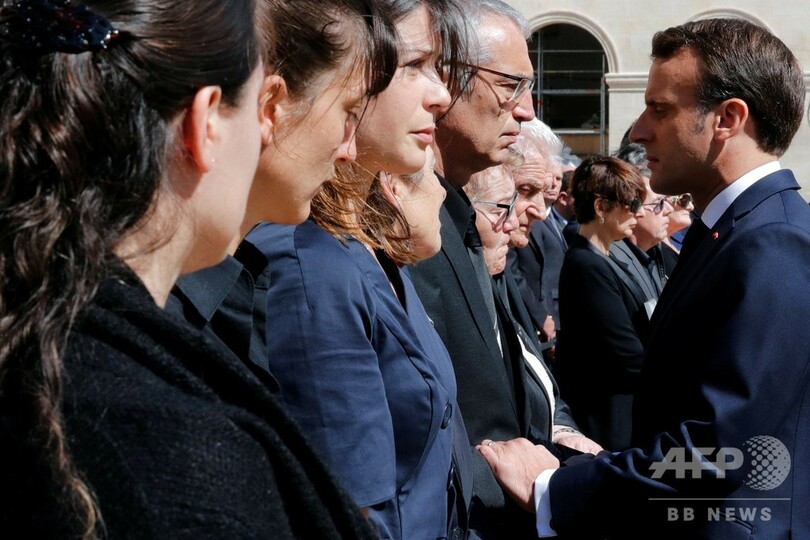 兵士、消防隊員、退役軍人らがアンバリッドに通じる橋に並び、2人のひつぎを運ぶ厳粛な車列を見守った。式典には大勢の人が参列し、涙を流す遺族や顔を布で覆った特別部隊の隊員らの姿もあった。