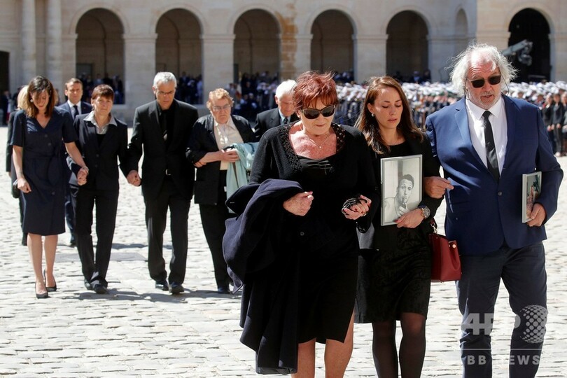 兵士、消防隊員、退役軍人らがアンバリッドに通じる橋に並び、2人のひつぎを運ぶ厳粛な車列を見守った。式典には大勢の人が参列し、涙を流す遺族や顔を布で覆った特別部隊の隊員らの姿もあった。