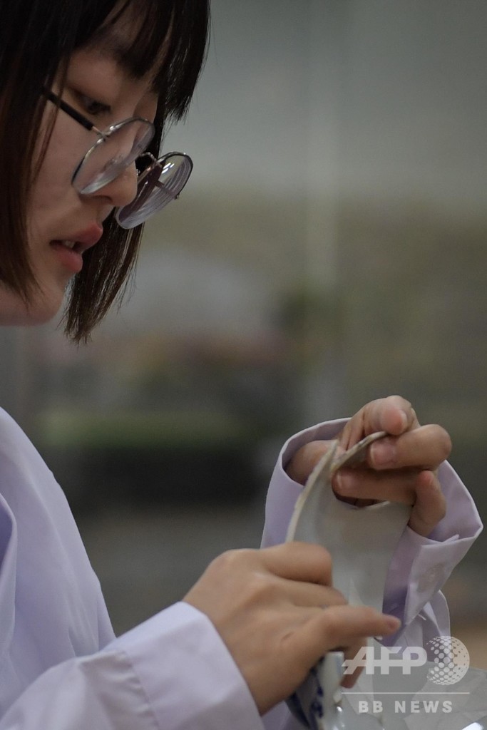 同プロジェクトの趣旨は、出土文化財の保護と修復の継続的推進と、関連文化の更なる復興を推進すること。同園では、破片を組み合わせて大まかな構造を復元した磁器6点を重点的に修復しており、完了後には一般公開する予定だ。(c)CNS/JCM/AFPBB News