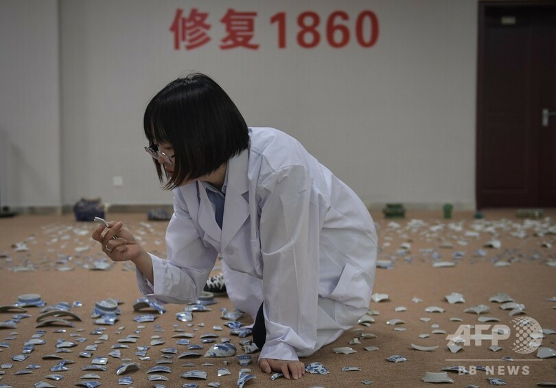 同プロジェクトの趣旨は、出土文化財の保護と修復の継続的推進と、関連文化の更なる復興を推進すること。同園では、破片を組み合わせて大まかな構造を復元した磁器6点を重点的に修復しており、完了後には一般公開する予定だ。(c)CNS/JCM/AFPBB News