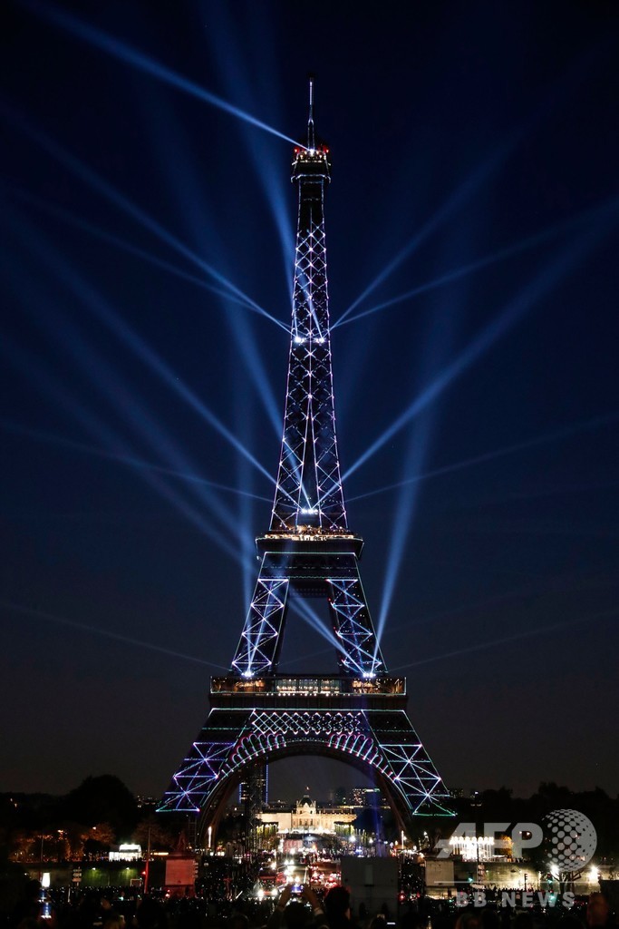エッフェル塔130周年 記念の「光のショー」、鮮やかに