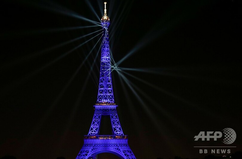エッフェル塔130周年 記念の「光のショー」、鮮やかに