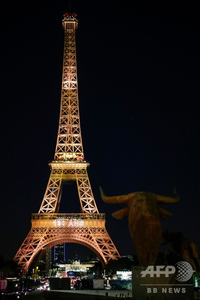 エッフェル塔130周年 記念の「光のショー」、鮮やかに