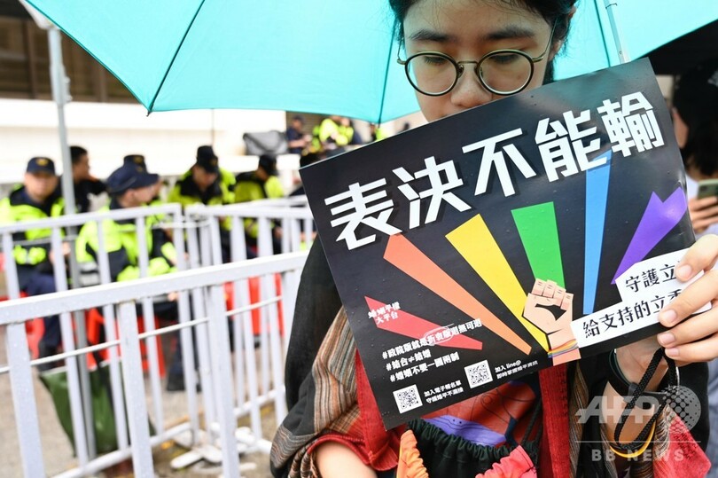【5月17日 AFP】(更新、写真追加)台湾の立法院(議会)は17日、同性婚を合法化する法案の採決を行い、賛成多数で可決した。同性婚合法化はアジアで初めて。
