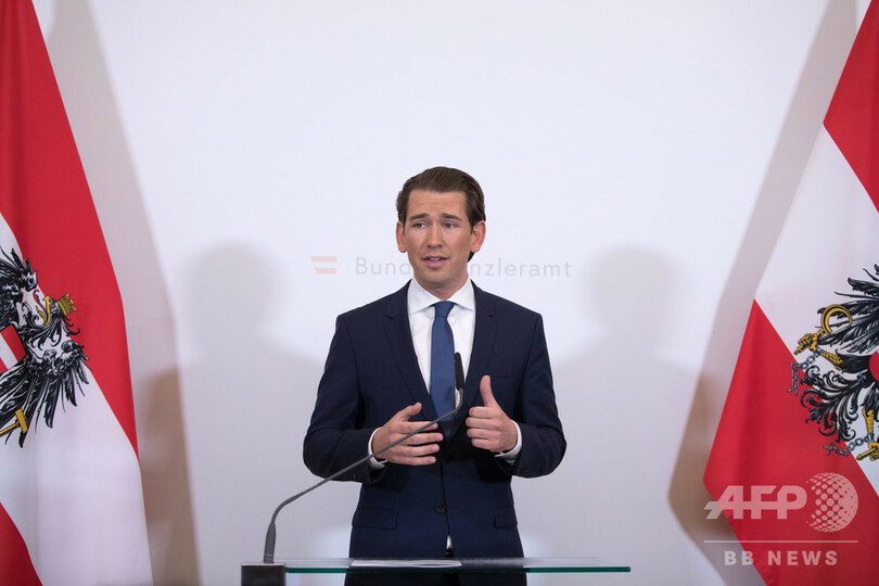 2017年10月の下院総選挙で第1党になったクルツ首相の中道右派・国民党(OeVP)と自由党は、同年12月に連立政権を発足させていた。(c)AFP/Jastinder KHERA