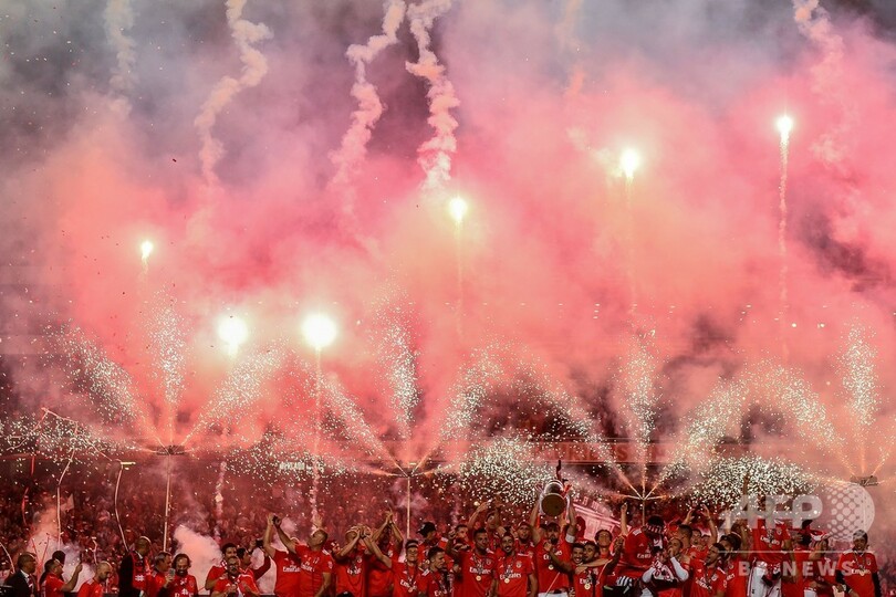 同日の試合ではポルトもスポルティング・リスボン(Sporting Lisbon)に2-1で勝利したが、サンタ・クララの反撃を1点に抑えたベンフィカが優勝を飾った。試合終了の笛が鳴り響くと、ベンフィカが拠点を置くリスボンの街は歓喜の渦に包まれた。(c)AFP