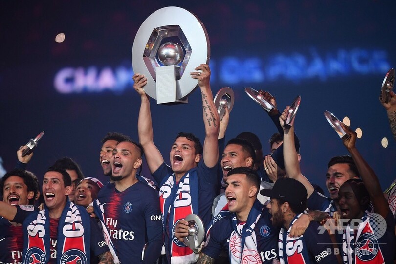 試合後には、花火が打ち上がる中で優勝トロフィーが授与された。世界最高額の選手であるネイマール(Neymar da Silva Santos Junior)は出場停止中のためスタンド観戦だったが、8回目のリーグ優勝を祝う最後のセレモニーではピッチに向かい、スタジアムを1周して本拠地パルク・デ・プランス(Parc des Princes)のファンにあいさつした。