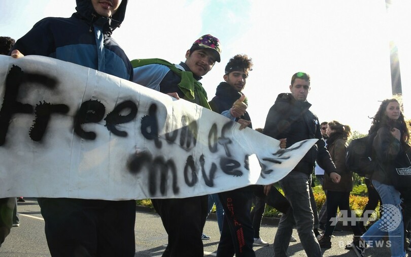 英国を目指す移民らは、英仏海峡トンネル(Channel Tunnel)を通行する車両、もしくはフェリーでの英国入りが阻止されることから、気温が低い上、潮の流れが強く、船舶の往来も激しいにもかかわらず、危険を冒して小型のボートでの渡航を試みる例があるという。(c) AFP