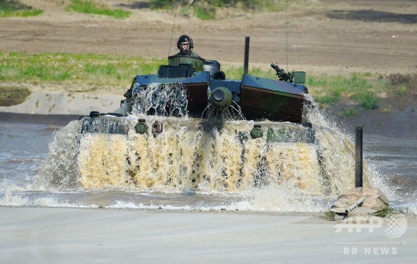 【5月21日 AFP】ドイツ北部ミュンスター(Munster)の演習場で20日、北大西洋条約機構(NATO)の高度即応統合任務部隊(Very High Readiness Joint Task Force、VJTF)の訓練が行われ、アンゲラ・メルケル(Angela Merkel)首相が視察に訪れた。(c)AFP