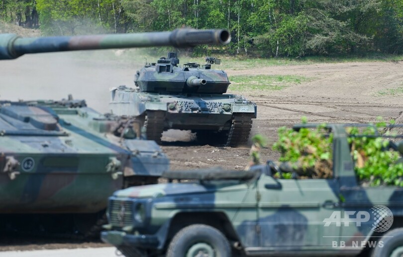 【5月21日 AFP】ドイツ北部ミュンスター(Munster)の演習場で20日、北大西洋条約機構(NATO)の高度即応統合任務部隊(Very High Readiness Joint Task Force、VJTF)の訓練が行われ、アンゲラ・メルケル(Angela Merkel)首相が視察に訪れた。(c)AFP