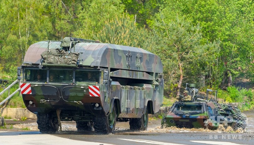 【5月21日 AFP】ドイツ北部ミュンスター(Munster)の演習場で20日、北大西洋条約機構(NATO)の高度即応統合任務部隊(Very High Readiness Joint Task ForceVJTF)の訓練が行われ、アンゲラ・メルケル(Angela Merkel)首相が視察に訪れた。(c)AFP