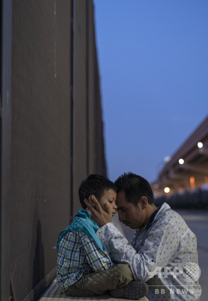 【5月27日 AFP】国境を越え米国に入国したテキサス州エルパソ(El Paso)で、息子(6)を抱きしめる男性(27)。親子は、ひと月かけてグアテマラからメキシコを移動しこの地にたどり着いた。