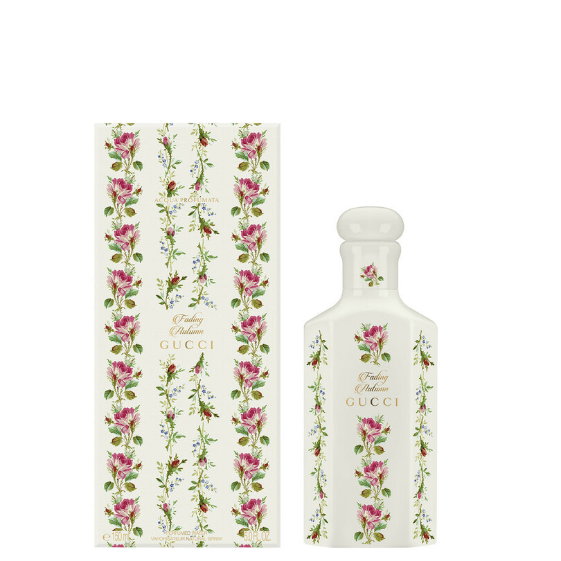 オードパルファムのボトルは、ラッカー仕上げのストッパー付きガラスボトルにゴールドのレタリングや動物のシンボルを装飾。パフュームウォーターは、特別にデザインしたホワイトラッカーのガラスボトルに収められ、「グッチ」独特のフェミニンなピンクローズをプリントした。オイルは、セージグリーンのラッカー仕上げのガラスボトルで、キャップ一体型のガラス製アプリケーター付き。キャンドルはゴールドの装飾が華やかな陶器製のジャーに入っており、インテリアとしても映えるデザインだ。