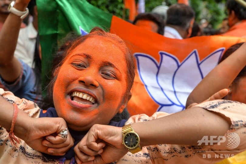 【5月23日 AFP】(更新)19日に投票が終了したインド総選挙は、23日に始まった開票作業が進む中、ナレンドラ・モディ(Narendra Modi)首相率いる与党のインド人民党(BJP)が過半数の議席を確保し圧勝する見通しとなったことから、同党が勝利を宣言した。
