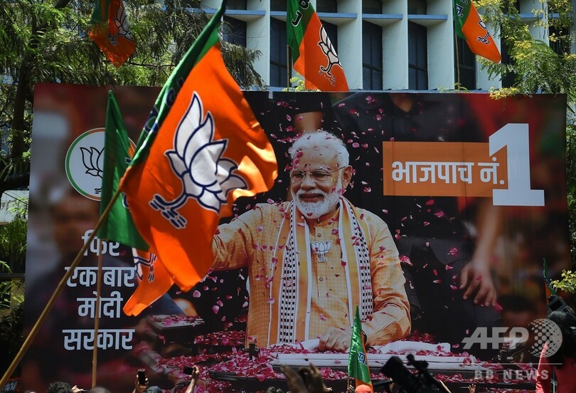 【5月23日 AFP】(更新)19日に投票が終了したインド総選挙は、23日に始まった開票作業が進む中、ナレンドラ・モディ(Narendra Modi)首相率いる与党のインド人民党(BJP)が過半数の議席を確保し圧勝する見通しとなったことから、同党が勝利を宣言した。
