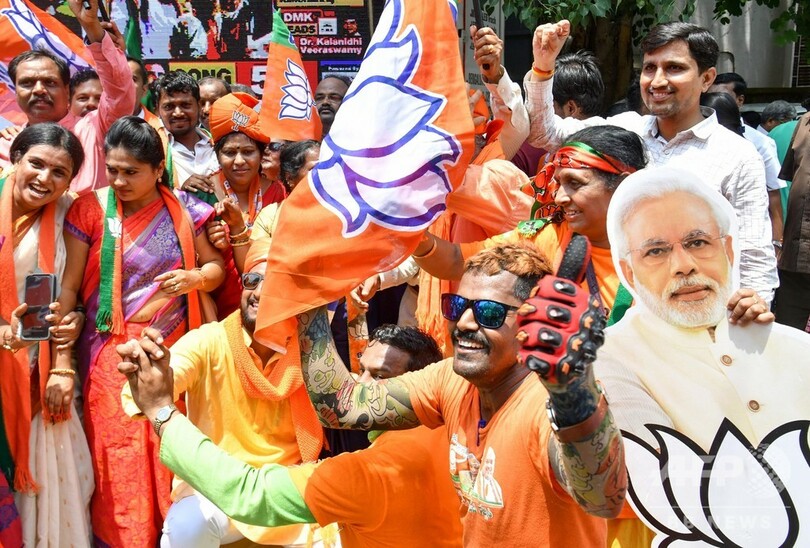 【5月23日 AFP】(更新)19日に投票が終了したインド総選挙は、23日に始まった開票作業が進む中、ナレンドラ・モディ(Narendra Modi)首相率いる与党のインド人民党(BJP)が過半数の議席を確保し圧勝する見通しとなったことから、同党が勝利を宣言した。