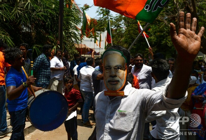 【5月23日 AFP】(更新)19日に投票が終了したインド総選挙は、23日に始まった開票作業が進む中、ナレンドラ・モディ(Narendra Modi)首相率いる与党のインド人民党(BJP)が過半数の議席を確保し圧勝する見通しとなったことから、同党が勝利を宣言した。
