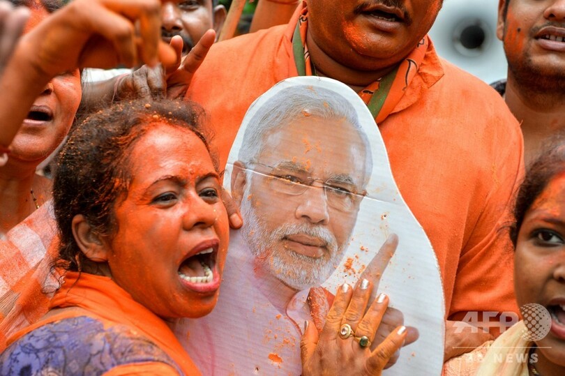 【5月23日 AFP】(更新)19日に投票が終了したインド総選挙は、23日に始まった開票作業が進む中、ナレンドラ・モディ(Narendra Modi)首相率いる与党のインド人民党(BJP)が過半数の議席を確保し圧勝する見通しとなったことから、同党が勝利を宣言した。