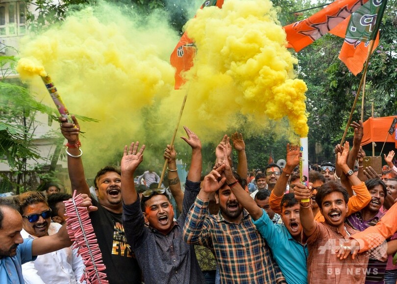 【5月23日 AFP】(更新)19日に投票が終了したインド総選挙は、23日に始まった開票作業が進む中、ナレンドラ・モディ(Narendra Modi)首相率いる与党のインド人民党(BJP)が過半数の議席を確保し圧勝する見通しとなったことから、同党が勝利を宣言した。