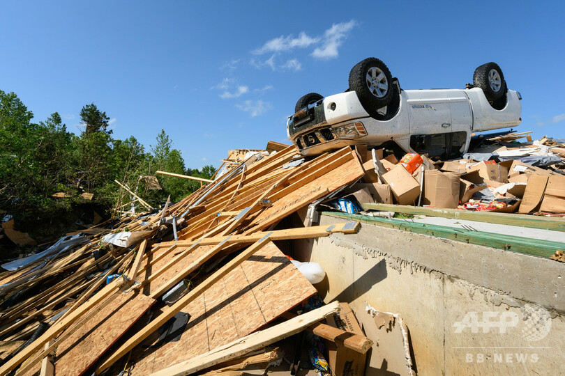 【5月23日 AFP】(写真追加)米ミズーリ州で22日、強力な竜巻が発生し、3人が死亡した。当局が翌23日、発表した。同州では送電線が切れて木々が倒れた他、窓ガラスが割れたり、路上にがれきが散乱したりする被害が出ている。