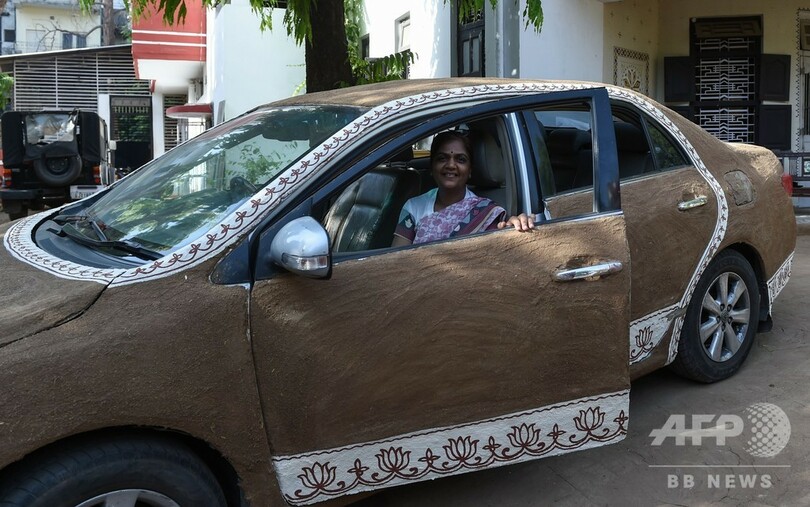 【5月24日 AFP】インド・グジャラート(Gujarat)州アーメダバード(Ahmedabad)で暮らすセジャルベン・シャー(Sejalben Shah)さんは、運転中の暑さをしのぐため、車体全体に牛ふんと泥の混合物を塗っている。夏の炎天下でもエアコンを使わず窓を開けて運転するシャーさんだが、こうすることで暑さが少し和らぐという。グジャラート州では夏季、気温が連日42度前後まで上がる。(c)AFP