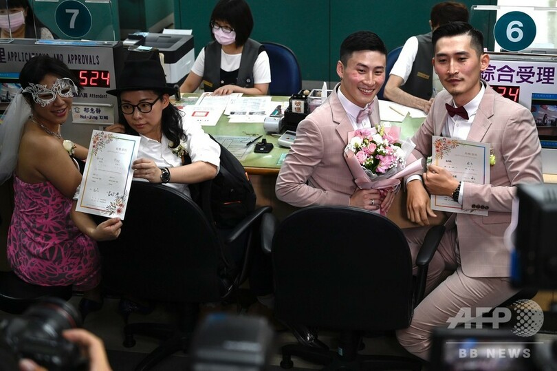 同性婚合法化の台湾、同性カップルが次々と婚姻届を提出