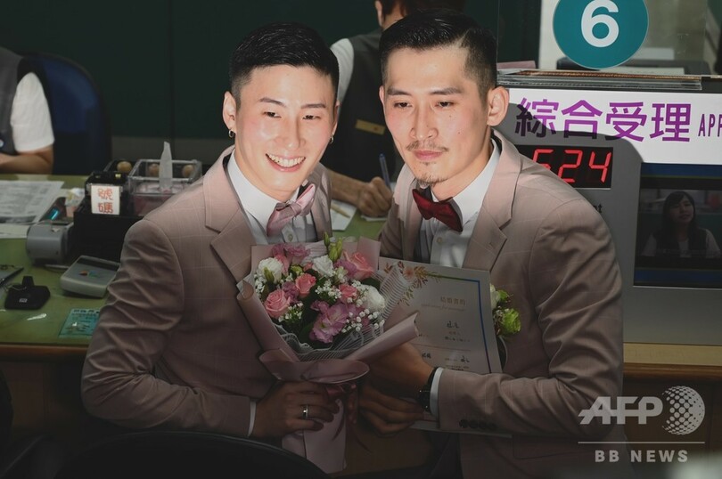 同性婚合法化の台湾、同性カップルが次々と婚姻届を提出