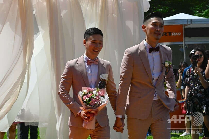 同性婚合法化の台湾、同性カップルが次々と婚姻届を提出