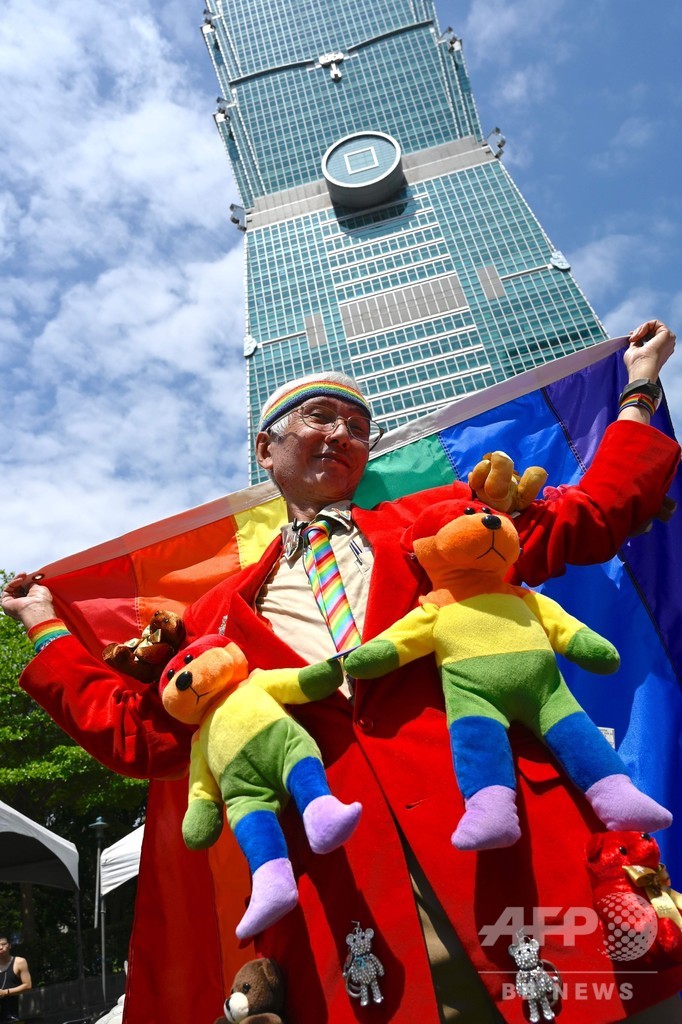 台湾の立法院(議会)は先週、同性婚を合法化する法案を可決。LGBTの権利支持者たちは台北市内の各地で歓喜に沸いた。だが一方で、高齢者や保守的な考えが根強く残る地方の住民の間には同性婚に反対する人も少なくない。(c)AFP/Amber WANG and Jerome TAYLOR
