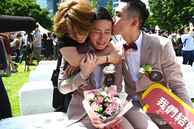 同性婚合法化の台湾、同性カップルが次々と婚姻届を提出