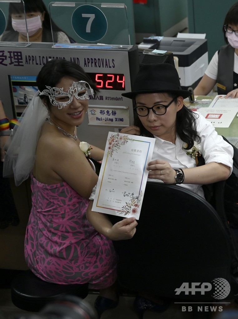 同性婚合法化の台湾、同性カップルが次々と婚姻届を提出