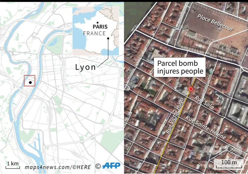 【5月25日 AFP】(更新、写真追加)フランス南東部リヨン(Lyon)中心部で24日、歩道に置かれていた荷物が爆発し、十数人が負傷する事件があった。事件はフランスが激戦の欧州議会(European Parliament)選挙を2日後に控える中で発生。エマニュエル・マクロン(Emmanuel Macron)仏大統領は事件を「攻撃」と呼んだ。